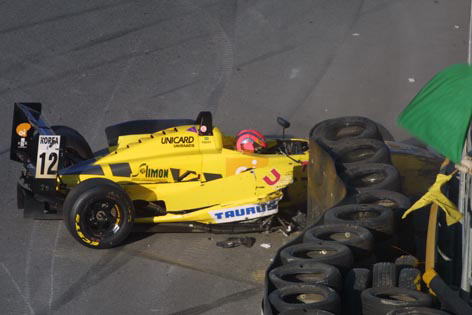 激しかったのはピケJrとコートニー(全日本F3チャンピオンね)の3位争い。ラスト数周でコートニーが禁断の裏技を使いピケがスピン! いやーコートニーは上手いよ。見事なプッシング(笑)。 ところが次の周に…