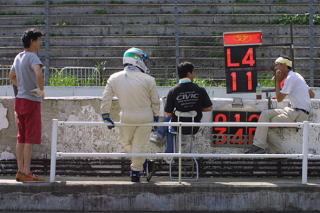 あと4周〜。 ココに写っている3人のスーパーメカオヤヂの皆さんで 何レース勝ったのか数え切れない、激速メカです。 なんで草レースに集合してるんでしょう(笑)。 |