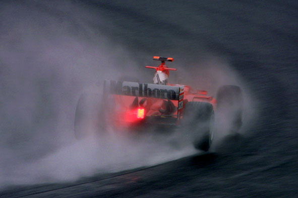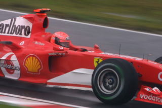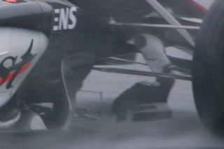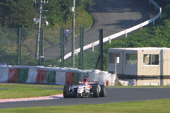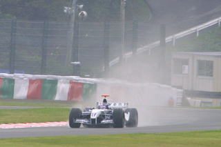 そんな鈴鹿を熱くしたのがこのオトコ! タイムはべラボーに遅い! 挙動はS耐マシンよりヒドイ! だけどそのマシンで毎周ギリギリ限界まで攻め続けさせるものは一体なんだ!っていうくらいの攻めっぷり。 スプーンコーナー進入から出口まで、超ロング飛距離の4輪ドリフトをありがとう! シューマッハに周回遅れにされた直後、ついつられてフェラーリと同じ進入速度で入ってオトコ寸前のナイスなドライビングは、フェラーリの優勝回数は忘れても絶対に忘れないでしょう。 世界は広い!オレの走りもまだまだぬるかった! そんなオトコを見られるのがライヴの醍醐味! ミナルディの映らない生中継なんてナマとは言わん!! |