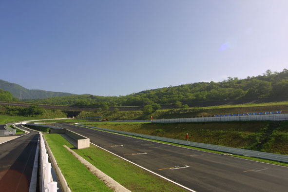 30度バンクにかこまれたショートコースは超テクニカル。 全長800m強、1周30秒ちょっとのコースとは思えないほど走りがいがあります。ミニサーキットじゃなくて、ショートコースって表現がピッタリかな。 日光や筑波で走ってる人はイチコロでやられちゃうよ(笑)。 もともとはトレーニングコースとして設計されたそうなので、わざと難しいレイアウトなんだって。 特に難しいのがこの1〜3コーナー。 オレのマイインテRでは1コーナーに入りながら2速にダウン。2速8200回転くらいだったかな。オーバーレヴさせない自信がない人は3速でしょう。 思いっきり下りのストレートからフラット〜登りに変化する1コーナー。次はクリッピングポイントが見えないほどの下り2コーナーをバリバリにインカットして直線的に3コーナーへ。SUGOのストレートと同じくらい登ってる3コーナーを立ち上がりると傾斜が減って荷重が抜けるというオマケつきです。 この時点で超難関っぽいよね。 |