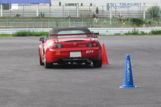 ![]() 午後はサーキットっぽいレイアウトにして模擬サーキット稽古! サイドブレーキ禁止、1速禁止にして、マシンのコントロール、つまりブレーキング〜コーナリングの鍛練に集中! 禁止しなくても1速は必要なかったかな。 決して広くない筑波のジムカーナ場にもかかわらず、2速のイ〜速度で回るコースを設定しました。 でもただ走るだけじゃなくて、最後は必ずBOX制動。コーナリングしてきた速度にあわせて、自分でブレーキングポイントを設定しないと止まれない、超実戦鍛練です。 |
