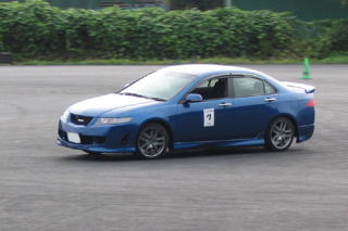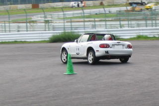 ドラテクは競争の中で磨かれるのもまた事実。 競争の楽しさを伝えるのもレーシングドライバーの仕事です。 最後の仕上げにスラロームでスプリットレースをやりました。 スプリットレースは、2箇所からスタートして各自のコースを走ってゴールってやつ。2台が交差したりしないから危なくないし、コースは左右でいっしょだから、見た目でどっちが速いかわかるというコースです。 もちろん最後はBOX制動。加速が速いクルマはブレーキングが難しいし、何より、相手がいる状態で正確なブレーキングをできるかどうかが勝負! ビートとインテRが同時にゴールなんてことになるくらいだから、クルマの性能差はカンケーなし! |
