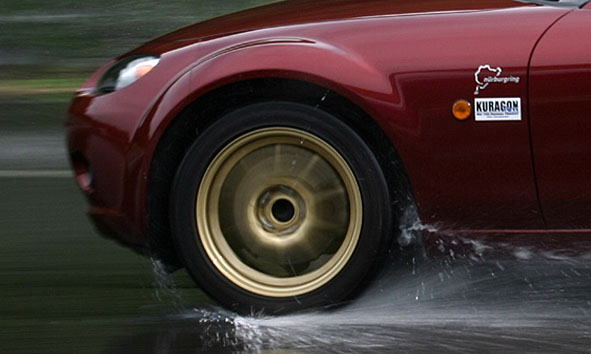 みんな止めることを気にしすぎてると思う。 確かに止めるのは大切だし、しかも難しいからどーしても話題になるのはわかる。ただ、ブレーキブレーキと言い過ぎるのは、ひとつ間違えばまさに後ろ向きの話になりがちです。「ブレーキを残す」なんて典型的な例だな。 クラゴン部屋では安全を確保するためにブレーキをやるけど、ブレーキでタイムを削るなんて話はしたことありません。 クルマってのは止めるだけじゃなくて前に進めないと、つまりタイヤを止めるんじゃなくて転がさないといけないんだな。タイムを出すならクルマを前に進めるのが一番いいはずだし、気持ちよく走るにしても、少ない減速で曲がれて遠慮なくアクセルを踏めるコーナリング性能っていうのは、みんな大好きのはずです。 親方走見で「トラクションのかけ方が違う!」と思った人はご明察。それがタイヤを転がして前に進めるってことです。 こういう前向きのことも考えると、ドライビングはちょっと変わるはずです。まあ何よりも2009年は前向きに、ポジティブに、アグレッシヴに行きましょうってことで(笑)。 さて、前編はタイヤ本体の話。 タイヤの大切さはクラゴン部屋のもてぎASTP稽古に来たことのあるみなさんはご存じの通り。クルマが路面と接するのはタイヤを通してのお話で、ボディが直接路面とガリガリするのは、タイヤがさやうならしたり、ロールオーバーしたときだけのはずです。 つまるこころ、ドライビングとはそのタイヤをどう使うか、コレに尽きます。 ところがです。実はその前にとっても大切なことがあって、それはタイヤが「真円」で回っているかどうか。わかりやすくいえばブレなく回っているかどうか。ブレっていうのは要するにタイヤの上下の振動で、真円性の低いタイヤっていうのは、上下にジャンプと着地を繰り返しながら走ってるようものです。 だから真円性を上げる=グリップを上げる、といってもいいのですよ。 そこで大切なのがタイヤの組み方。 機械でぶいーんと回してウエイトを貼ってバランスを取れば、誰がやっても同じなんてことは全くなくて、良いメカニックはネジの締め方から違うように、ベーシックなところで腕の差が最も出るものです。 ちょうどロードスターのタイヤを使い切ったので、レブスピードの2008年11月号にも掲載されている京葉サービスの阿倍さんちにお願いしてきました。もともとは武ちゃんつながりで知ってたんだけどね。 |
