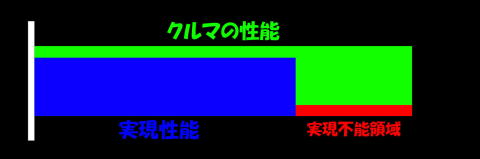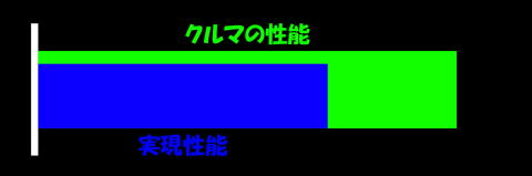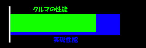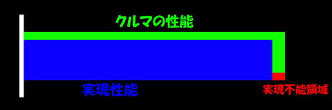 2011年、気合いが入るヤツ第2弾です。 オレがいろいろ書くのは、別に自分のドライビングが唯一無二で全面的に正しいとは思ってるからじゃないんですよ。物理的には正しいとは思ってるけど(笑)。 なぜかというと、みんなで「アレがいいんじゃないか」「コレがいいんじゃないか」と遊ぶためです。だから多くの意見があるのは大歓迎です。だけど、例えばメディアに出るような人は、趣味のクルマ好きさんに対してのクルマのプロじゃーダメだと思うんですよ。本質的なドライビングのプロじゃないと。 素人さんの話をさらに素人さんが聞くんじゃ、それこそ素人向け専門誌、素人が出る素人のためのプロの素人向けメディアになっちまいます。 多くの人に何の抵抗もシフトもなく受け入れられるようなこと、その通りだ!と、支持してもらえるようなことは本質から外れてます。たぶん。多くの人がその通りだと思うことが正解なら、みんなもっと上手いはずだから(笑)。 クラゴン部屋は世界唯一のドラテク鍛錬場ですから、バリッと軸を通して、ズッキューンと気合いの入る本質的なヤツを行こうじゃありませんか。 ドライビング・プレジャーとクルマとの関係について考えてみました。 クルマで楽しく遊ぶためにチューニングするのに、上手くいかないでつまらなくなってしまうことは現実にあります。要するに、クルマの性能を上げていけば幸せになれるとは限らんということですな。そこを分析してみましょう。 オレも自動車体感研究所の研究員ですので、常に考えているわけでございますよ。 ![]() まず緑バーがクルマの性能。限界でもいいけど性能にしておきましょう。そして実現性能はクルマの性能に対して、ドライバーがどこまで引き出せるかということです。ドライビングスキルといってもいいけど、あとの説明で違うことになっちゃうから実現性能にしました。 上の人だと70%くらいはクルマの性能を引き出しているということにしましょう。 ![]() そして残りの30%くらいを赤くしてみました。コレはクルマの限界に対して使い切れない部分。実現不能領域にしてみました。気の利いた名前が思いつかねえ。 この赤い実現不能領域が少ないほど、クルマの性能を引き出しているといえます。 で、この実現不能領域が少ないほど、クルマの性能と実現性能がリンクしているほど、ドライビング・プレジャー度が高いという見方もできるんではないかと思いまして。 例えばポルシェGT3レースカーとロードスターなら、誰でも欲しいのはポルシェ。でもサーキットで走って「楽し〜!」と思えるのはむしろロードスターでしょう。オレはプレイ上等のヘンタイ親方なのでポルシェGT3の上級者向けプレイを希望しますが。 クルマの性能と、ドライバーの実現性能がある程度リンクしているのが、自分のクルマを自分の能力でコントロールできる状態であり、とっても満足感の高い、楽しいことだと言えるでしょう。 だから、ドライバーのスキルに応じて、楽しいと感じるクルマに差異があるのは当然といえます。 人間とクルマの親和性の高さ、という表現もできるかもしれません。 場合によってはクルマの性能が低いということも考えておかねばイカンでしょう。 ![]() クルマがヘチマすぎて、ドライバーの思い通りに走れない。ドライバーの期待にあまりに応えてくれなくて、対話不能に近い状態です。 こういうときにはチューニングしてクルマの性能を上げると効果がありそう。レースのセットアップはこうです。「ここでもっとこういう挙動になったら、もっと速度を上げられるのに」という話です。裏を返すと、限界で走れないヤツにはセットアップはできません。だってクルマの限界がわからないから遅いんだから、セットアップもヘチマもないべさ。 だからニュルでドイツの変態さんたちが言うことを聞くのは、まさにオレがタイムを出したというその一点のみの効果です。 でもみなさんがこういう状況になることは、まずないと考えていいでしょう。「クルマの限界が低くてダメだ」なんていうのは多くの場合でただの勘違いで、クルマとまるで相談してないから、言うことを聞いてくれないだけ。今のクルマはそれくらいよくできてます。 ここでチューニングに走るのが、間違ったデチューンをはじめてしまう時でしょう。 純正がダメだと思ってる人は、問答無用で実現性能の方が高いと思ってるんだよね。普通のみなさんが乗るなら、今の純正クルマは実現性能以下ということはないと考えた方がいいです。 サーキットを走るためのチューニング、というのが当てはまるのはブレーキ関係だけかな。パッドとかオイルとか。サスとかインチアップとか剛性アップなんかいりません。 だけどチューニングすりゃタイムが上がるじゃねーか、そしたら楽しいじゃねーかとお考えのみなさんには、ちゃんとキャイン&ギャフンの話を用意してあります。 ![]() 下の緑グラフのクルマの性能が増えてるのは、チュ