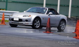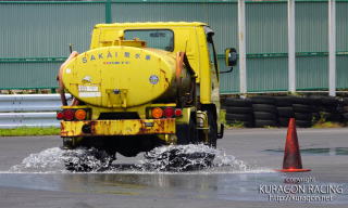 低温でタイヤの温まらない2月、さらに水を撒いて、最高に厳しいツルツル環境を作ってみます(笑)。