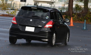 いつもは定常円をキッチリと、コーナリングの限界を追及するためにやっておりますが、今回はちょっと趣向を変えて、振り回してもOKにします。リア駆動車ならアクセルを踏んでオーバーステアにしてOK。4駆なら4駆の速いドリフトを体感してみる。FF車は振り回すのは難しい…と思うでしょう。意外とオーバーステアが出ます。予想外のヤツが。
