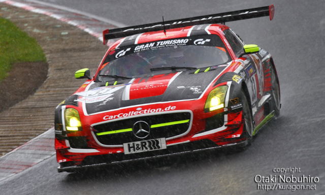 でも雨だから特に本気を出してるわけではなくて、可能な限り限界を使い続けるのはドライ路面と同じ。こっちは普通で、みんなウエットで勝手に遅くなるだけです。ニュルブルクリンクのジモティーなんだから、ウエットの方が速く走れるはずなのにネ!