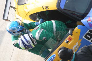 オレはカメラを持ってこの有様。だって写真がいるんだもん。 このカッコで前回ポールポジションなんだから、最高だよね。 上の写真ももちろんオレが撮りました。 土曜から写真撮ってくれた専カメさんありがと! 応援に来てくださった柘植会長、藤田所長、S2000in彩の国のみなさんありがとうございました。そして予選1回目だけでゴメンナサイ。 |