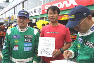 応援に来てくれた柘植会長、藤田所長、越智君、S2000彩の国の専亀さん、みなさんありがとうございます。そして今回は締め切り地獄をくぐりぬけてVTECSPORTS編集部の古舘さんとカメラマンの宮越さんが来てくれました!