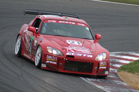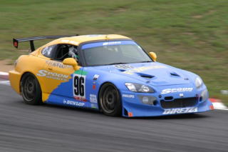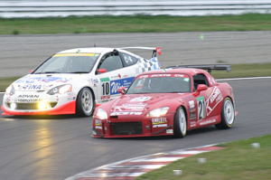 スタート直後はご覧の通り砂かけジジイが出るほどの超スプリント。 24時間だから最初だけがんばってもしょうがないんだけど、目の前に敵がいれば追いかけるのが人情ってもんだ!そんな中でツヨシさんはあくまでも自分のペース。最初は10位あたりを走行し、集団がバラけると同時に着実に順位を上げていきます。 この第1スティントで自分をおさえられるかどうかが、ラスト1時間のトラブルから逃げられるかどうか。 さすがデイトナ24時間レースにも出ている経験豊富なドライバーです。予定の2時間を終えるころには5位にまで浮上。 クラス4の1位はスプーンS2000、2位はベルノ東海ムーヴインテ。他のチームは1分34〜5秒なのに、この2チームは1分31秒台というエライペースでぶっ飛ばしてるけど、最後までもつのかね。 チャンピオン争いもあるから引くに引けない両チームです。 |