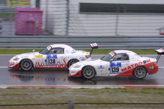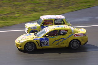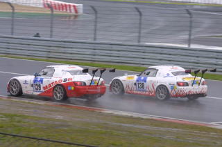 1周目から早くもオトコ祭り! 予選もそうでしたが、この人たちは待つということを知らないんでしょうか。これから24時間走るんだぞ〜。 さらに1周目にして、セーフティカーをおさえたまま、1分遅れでスタートしたはずの第3グループに飲み込まれました(笑)。こっちも大変だけど向こうだって信用できないから、全力で回避! この際5秒のタイムロスよりも、無事に走ることが大切です。 |
