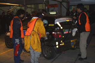 ![]() そのころテッツア組は接触で緊急ピットイン。 ライトの交換で事なきを得ました。だけど、やっぱり24時間で修復の必要な接触はNGです。しょうがないけどね。 ヴィッツだったらスペアのヘッドライトもないっつーの。だってスペアのバルブもないんだから(笑)。 |