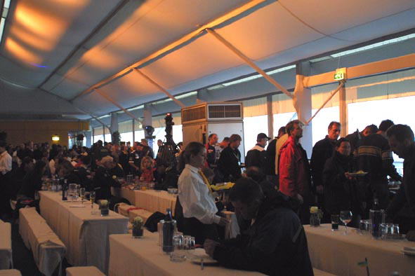 表彰式のあとはバイキング形式で食事会。もうタメイキしか出ません。 片付けの続きもあるんで、メシもソコソコにガッツリ食ってピットへGO! 寝袋とかを持って帰るアレなんで、かさばるものは全部現地の人にプレゼントしてきました。 |