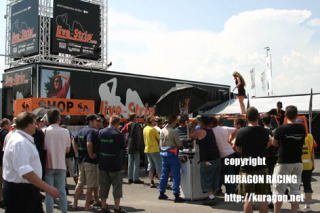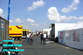 ゲートに原チャで迎えに来てくれたメカニックからパスをもらい、ゴゴゴゴゴゴとたたずむフレパーモータースポーツのテントへ。 初参戦の2005年を思い出すなあ。あのときはテントも何もなくて、全世界で使われてどんな病原体がいるかわかんねえコンテナで寝起きをするオレたちにとって、同じピットを使ってたこのフレパーモータースポーツがうらやましくて。人はいっぱいだし、トラックから生えるデッカイ基地みたいなテントはあるし、あーホントうらやましかった。2年後にそのチームで乗ることになるとはね。 とはいえ、カルタスで出たときに突撃インタヴューに行ったので、広報担当のマニュエルとは既知の仲。先方もよく来たなと迎えてくれました。こういうときにキャラが薄いと覚えてもらえねーんだ。 |