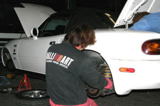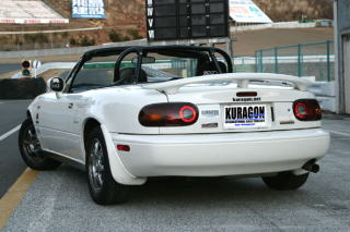さて、ここからはクラゴン部屋ロードスターの話。 けっこう前の話になっちゃったので改めて書きましょう。 ![]() ![]() コンセプトは以下の通り。 ■一般道快適 ■全天候型 ■コーナリングが楽しい ■荷重移動、荷重変動を勉強できる オレがクラゴン部屋の移動に使う以上、雨の日も風の日も、場合によっちゃ雪の日も走れないとダメ。しかも車高が低くてガソリンスタンドに入れないとか、車庫の出入りのたびに擦るのを気にするのがキライなので、車高はソコソコ。そんでもってサーキットの使用に耐えて、しかも楽しいというのが目指したところです。 オレに言わせりゃせっかくのロードスターなのに、車高低すぎ、ストローク無さすぎ、荷重移動もヘチマもない状態で乗ってる人があまりに多いだけなんだけどね。いまどきレーシングカーだってそんなに硬くないっちゅーの。レーシングカーがどれだけボディ補強をしてて、どれだけスリックタイヤのグリップがあるのか知らないで、スプリングの数字だけマネするのが典型的なド素人さん。だいたい硬けりゃボディを痛めつけるんだから、そんな状態で乗ってる時点でクルマ好きなんて片腹痛いぜ。 ![]() ![]() あとやっぱり大切なのは、ドライビングが上達するかどうか。 サーキット用のサスキットなんかは、タイムを出すためにストロークを規制して、荷重変動を少なくしてます。結果として4輪のグリップが安定してるから、高い速度を保ってコーナーを曲がれる、というわけです。タイムだけを考えればこれでいいんです。でも上達するかどうかというと、そうじゃないんだな。 せっかく安定しているコーナリング性能を、雑なステアリングワークや、雑なペダルコントロールや、雑な速度コントロールで消化している人が多い、いや多すぎる! どう見ても失敗してるコーナリングなのに、コースアウトしてないから、スピンしてないから、クルマは安定してるから、それでOKになっちゃう。しかもやっぱり心理的に自分は上手いと思いたい面もあるわけで(笑)、なかなか下手な自分を認めたくない。失敗に気づかなきゃ上達するのは不可能です。 だからクラゴン部屋の「SPEC上達オーリンズ」は、荷重変動がちゃんと起きて、失敗を失敗とわかるようにしてあります。まず現実を受け止めるのが大切なのだ(笑)。そしていずれは、荷重変動じゃなくて荷重移動を積極的に使って、ヨーコントロールとか、Z軸コントロールとか、よりハイレベルなドライビングを身につけてくれればいいなと思ってます。 つまりクラゴン部屋の弟子専用。バッチリだぜ。 ![]() ![]() オレも最近まで気付かなかったんだけど、プロは例えば1cmしかないストロークの5mmとか3mmとかを感じて、コントロールできるんです。 でもそんなのは普通の人はできないわけで、1cmストロークしないとわからない人にとっては、5mmや3mmは無いのと同じです。そうすると突然滑ったとか、突然スピンしたとかいう話になるんだけど、実際には感じられてないだけで、ちゃんと前兆は出てることがほとんど。 もし1cm動かないとわかんないんだったら、3cmストロークするようにしてあげれば、挙動がつかめるだろうし、もしかしたらコントロールもできるかもしれない。少なくともコントロールできる可能性は出る!! こんなことも考えて開発しました。 だから、「カッコ優先で車高を下げたい」「とにかくタイムを出したい」という人は絶対に買わないでください。そういうご要望はロードスターの専門店さんへどうぞ。オレの知っている中では特にRSアイザワさんとD−テクニックさんをオススメします。どちらもロードスターのプロショップとしていろいろな要望に答える豊富なデータをお持ちです。オレはドライビングのプロなので、ロードスターを使っていかにドライビングを楽しむかということしか考えてませんのでご注意を。 こんな考えで作ったものを気に入っていただけるようでしたら、現役のレーシングドライバーが自分のクルマとして合計2万5000km走って、絞り出した性能を存分に堪能してください。 2007年12月 クラゴン |