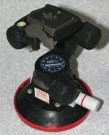 ロールバーを装着していないクルマのために用意した、吸盤式の車載カメラステーです。雲台は弐号と同じく360度回転しますので、リアガラスやクオーターガラスに取り付けて使用します。吸盤部の白い棒で内部の空気を抜く構造になっているため、吸着力は強烈です。また、吸着力が弱くなると赤いラインが見えるようになるので、突然落下することもありません。
