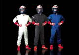 FIA公認モデルと同じノーメックス繊維を使ったレーシングスーツです。レーシングスーツは安全性だけではなく、操作性の向上にも貢献します。現在のFIA8856−2000規格ではFIA非公認モデルですが、数年前まで公認されていたISO6940規格のモデルと同等の安全性です。クラゴンの緑のスーツがコレです。